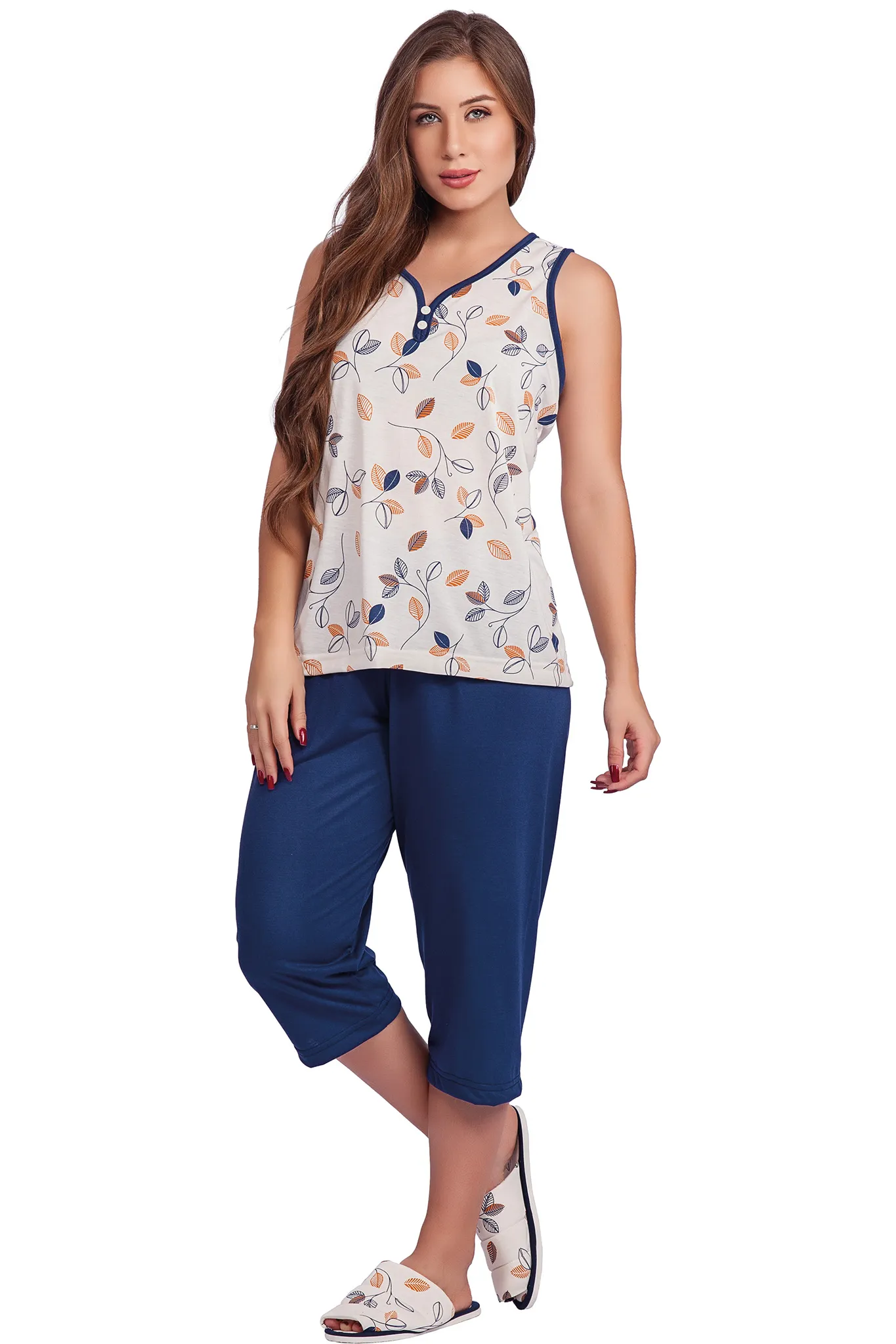 Pijama Capri Meia Manga Gola Princesa Algodão