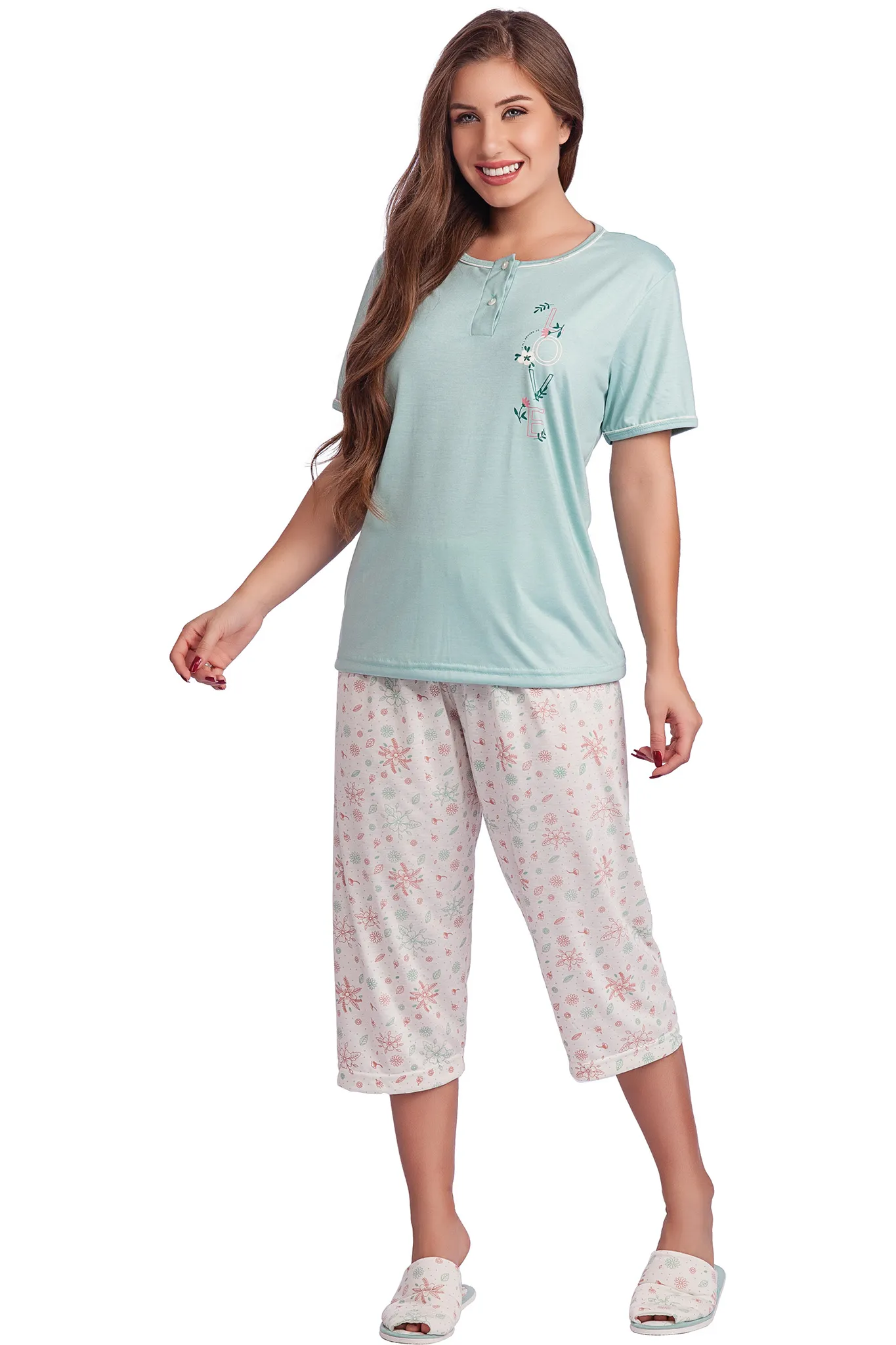 • Pijama Capri Meia Manga Aberto Poliviscose